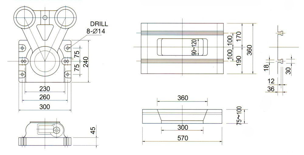| Slide hole / 沖頭鎖緊上模位置 | MM | 230mm 260mm ø14 | ||||||